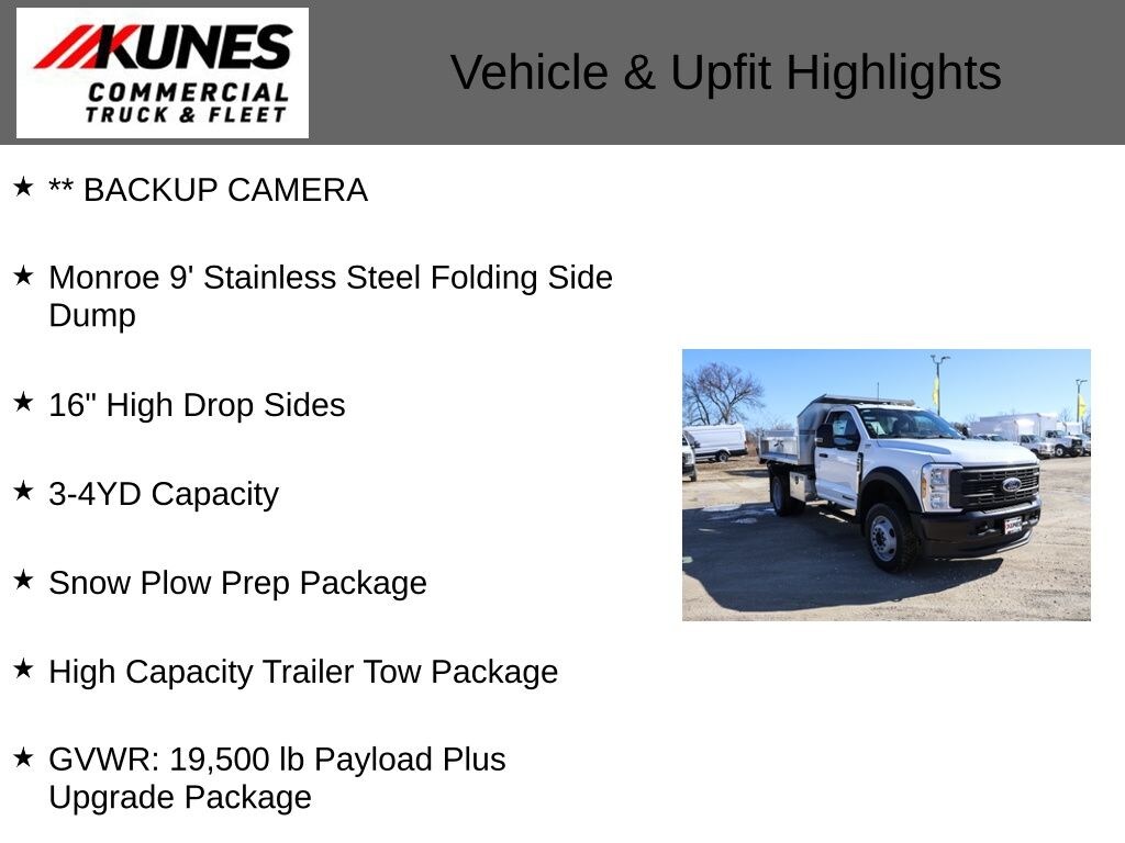 ** BACKUP CAMERA, Monroe 9' Stainless Steel Folding Side Dump, 16" High Drop Sides, 3-4YD Capacity, 4WD, GVWR: 19,500 lb Payload Plus Upgrade Package, High Capacity Trailer Tow Package, Snow Plow Prep Package.