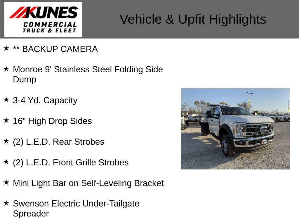 ** BACKUP CAMERA, Monroe 9' Stainless Steel Folding Side Dump, 3-4 Yd. Capacity, 16" High Drop Sides, (2) L.E.D. Rear Strobes, (2) L.E.D. Front Grille Strobes, Mini Light Bar on Self-Leveling Bracket, Swenson Electric Under-Tailgate Spreader, 4WD.