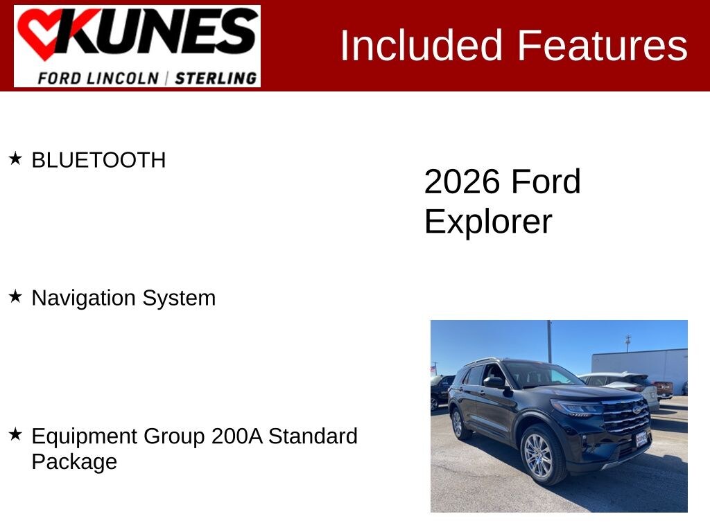 The 2026 Explorer can carry all the passengers and cargo you need in style and comfort. Also included with every new vehicle: LIFETIME "NO FEAR" WARRANTY and AT HOME COURTESY DELIVERY! Call us for full details! We pride ourselves on honesty and integrity, but please note that mistakes or misprints due to human error are possible. Find out why our dealerships have won DealerRater.com DEALER OF THE YEAR a whopping 10 TIMES! Call, email, or live chat with one of our friendly sales professionals now to schedule your test drive! Prices shown do not include taxes, license, and title fees and $377.63 documentary service fee, and $399 Security Fee. Price includes: $1000 - Auto Show Retail Bonus Cash. Exp. 03/02/2026 $1000 - Retail Customer Cash. Exp. 03/02/2026 $