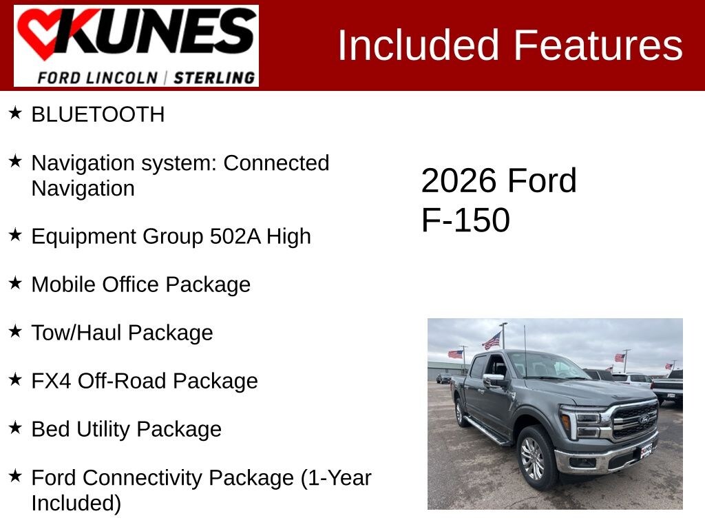 The 2026 F-150 can handle any task at work or play. Also included with every new vehicle: LIFETIME "NO FEAR" WARRANTY and AT HOME COURTESY DELIVERY! Call us for full details! We pride ourselves on honesty and integrity, but please note that mistakes or misprints due to human error are possible. Find out why our dealerships have won DealerRater.com DEALER OF THE YEAR a whopping 10 TIMES! Call, email, or live chat with one of our friendly sales professionals now to schedule your test drive! Prices shown do not include taxes, license, and title fees and a $377.63 documentary service fee, and $399 Security Fee.