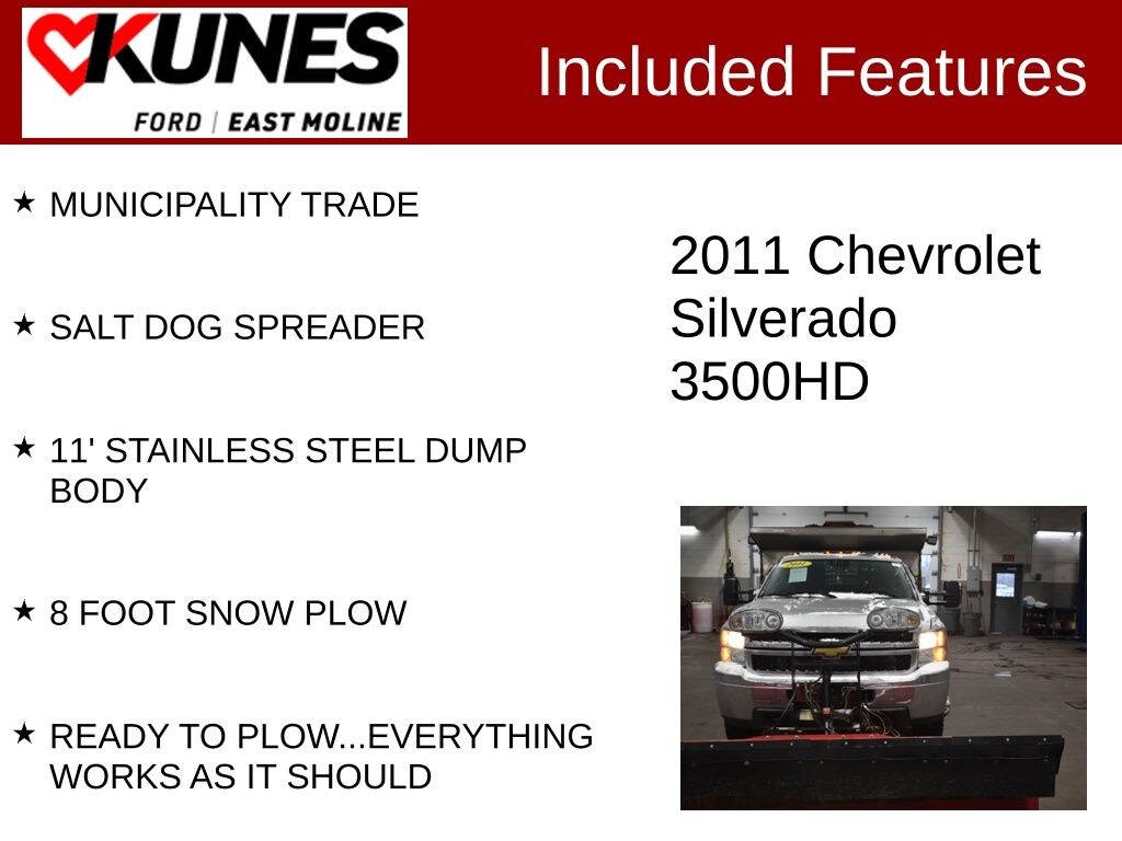 2011 Chevrolet Silverado 3500HD LT Sheer Silver Metallic Duramax 6.6L V8 Turbodiesel MUNICIPALITY TRADE, SALT DOG SPREADER, 11' STAINLESS STEEL DUMP BODY, 8 FOOT SNOW PLOW, READY TO PLOW...EVERYTHING WORKS AS IT SHOULD, Duramax 6.6L V8 Turbodiesel, Allison 1000 6-Speed Automatic, 4WD, Ebony Cloth.