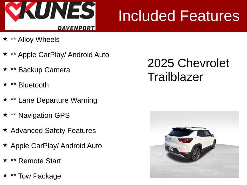 2025 Chevrolet TrailBlazer LT Summit White FWD 1.3L Ecotec Turbo DOHC SIDI w/VVT