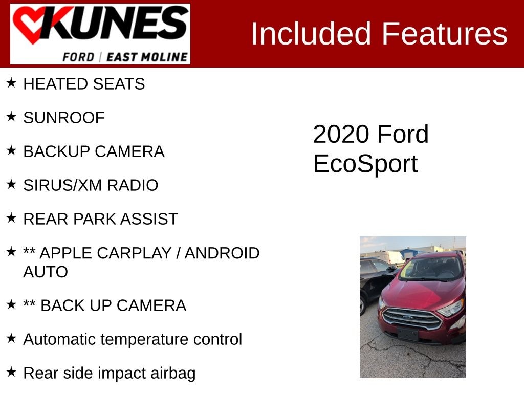 2020 Ford EcoSport SE Ruby Red FWD EcoBoost 1.0L I3 GTDi DOHC Turbocharged VCT