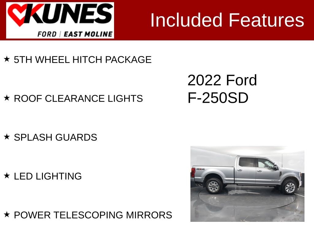 2022 Ford F-250SD Platinum Iconic Silver Metallic Power Stroke 6.7L V8 DI 32V OHV Turbodiesel Clean CARFAX. 5TH WHEEL HITCH PACKAGE, ROOF CLEARANCE LIGHTS, SPLASH GUARDS, LED LIGHTING, POWER TELESCOPING MIRRORS, 4WD. Odometer is 3867 miles below market average!