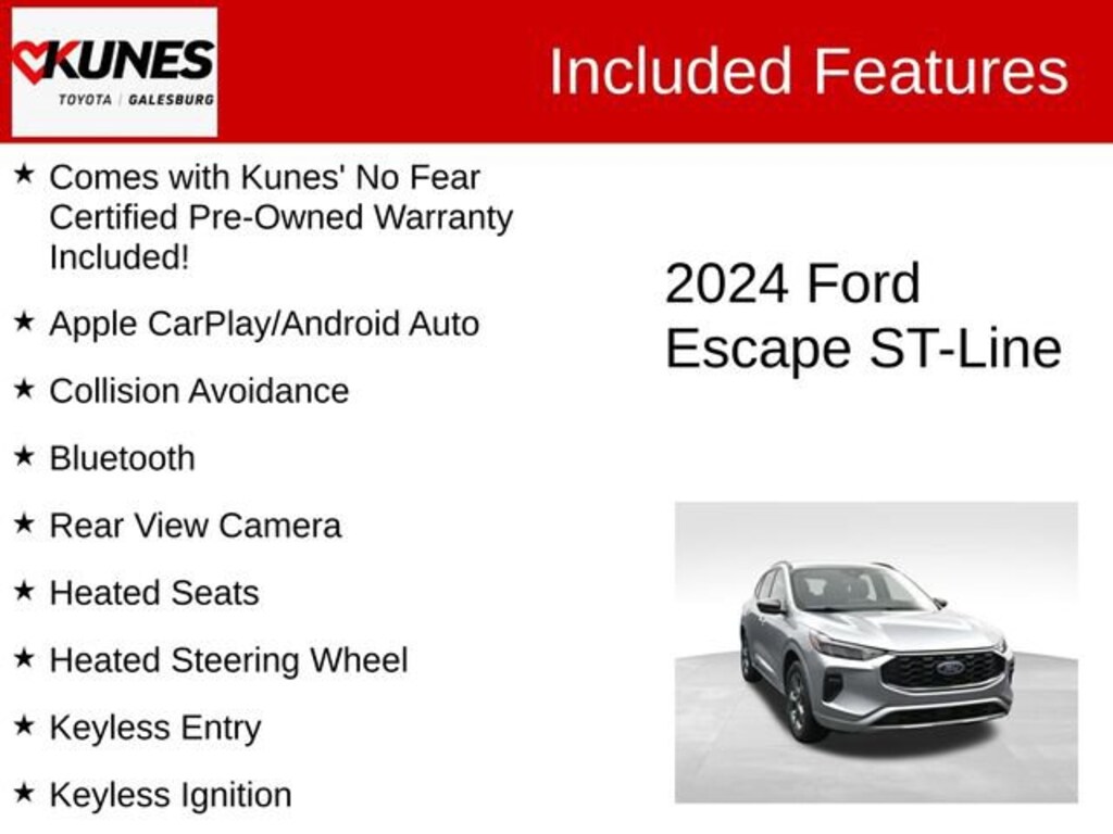 2024 Ford Escape ST-Line Iconic Silver Metallic Recent Arrival! CARFAX One-Owner. Clean CARFAX. Certified. Certification Program Details: