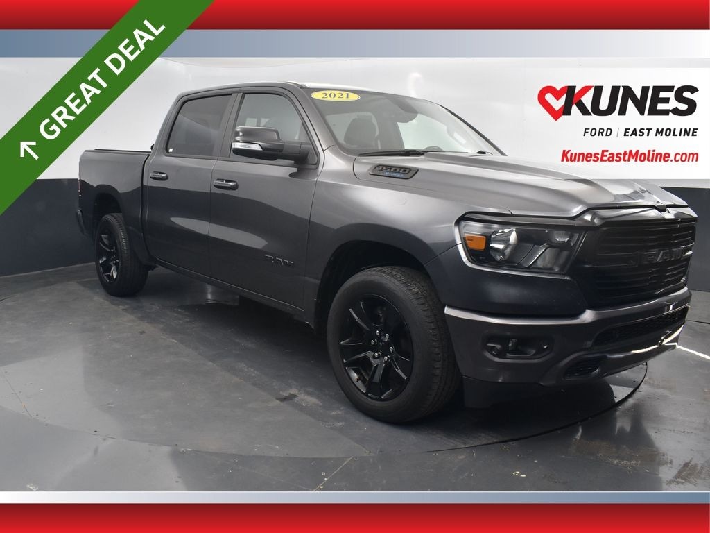 2021 Ram 1500 Big Horn/Lone Star Granite Crystal Metallic Clearcoat HEMI 5.7L V8 Multi Displacement VVT CARFAX One-Owner. NAVIGATION, HEATED/COOLED SEATS, ADVANCED SAFETY TECH, HEATED SEATS, REMOTE START, BACKUP CAMERA, SIRUS/XM RADIO, REAR PARK ASSIST, BLUETOOTH, WELL KEPT INSIDE AND OUT, ** APPLE CARPLAY / ANDROID AUTO, ** BACK UP CAMERA, ** BLUETOOTH, 400W Inverter, Advanced Brake Assist, For Details, Visit DriveUconnect.com, For More Info, Call 800-643-2112, Full Speed Forward Collision Warning Plus, GPS Antenna Input, Integrated Center Stack Radio, LED Footwell Lighting, Radio data system, Radio: Uconnect 3 w/5" Display, SiriusXM w/360L, USB Host Flip, Wheels: 18" x 8" Cast-Aluminum Painted.