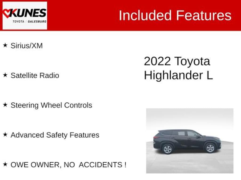 2022 Toyota Highlander L Opulent Amber Recent Arrival! CARFAX One-Owner. Clean CARFAX. Apple CarPlay/Android Auto, Collision Avoidance, Bluetooth, Rear View Camera, Non Smoker, Local Trade, Keyless Entry, Keyless Ignition, Remote Start, Sirius/XM, Satellite Radio, Steering Wheel Controls, Advanced Safety Features, OWE OWNER, NO ACCIDENTS !, AWD.